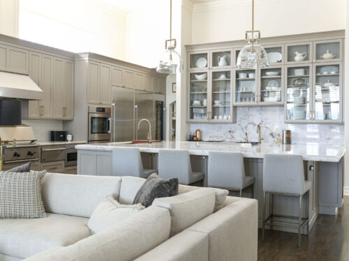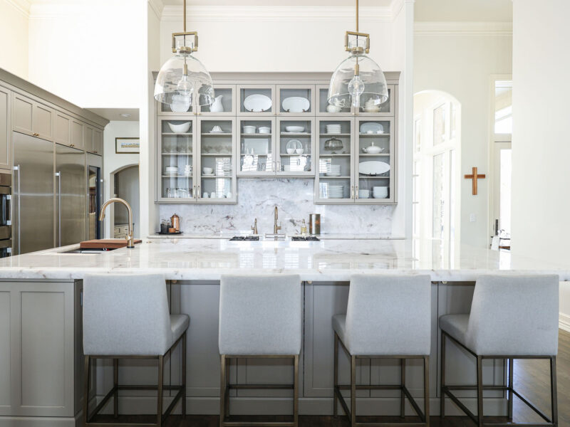 Transform your Tulsa kitchen with a stunning island, stylish pendant lighting, and a beautiful backsplash, creating a modern and inviting living space.