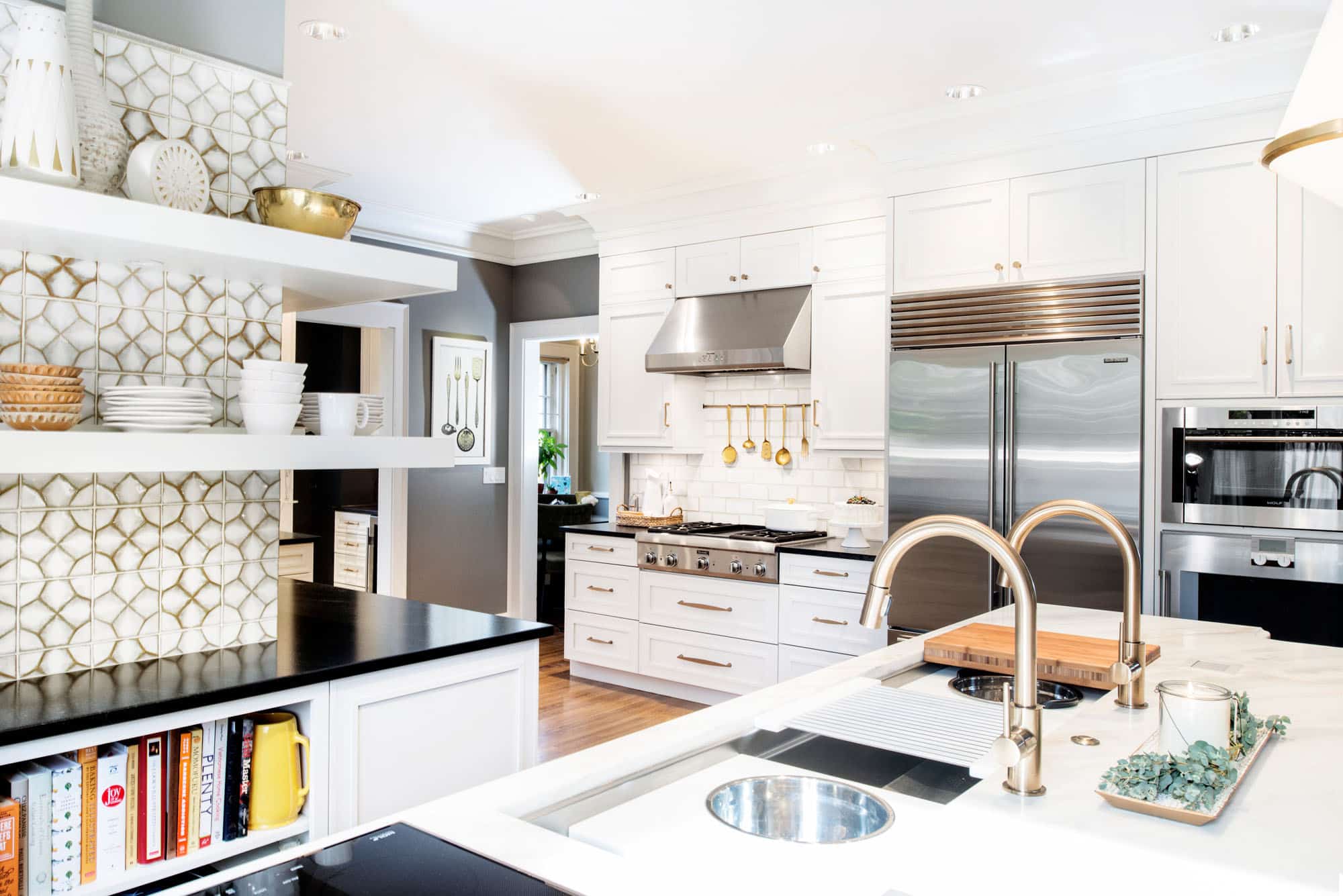 midtown-tulsa-kitchen-island-galley-ideal-workstation-white-marble-counter-tops-induction-cooktop-open-shelves-ann-sacks-tile-backsplash-cookbook-storage-tulsa-kitchen-remodel