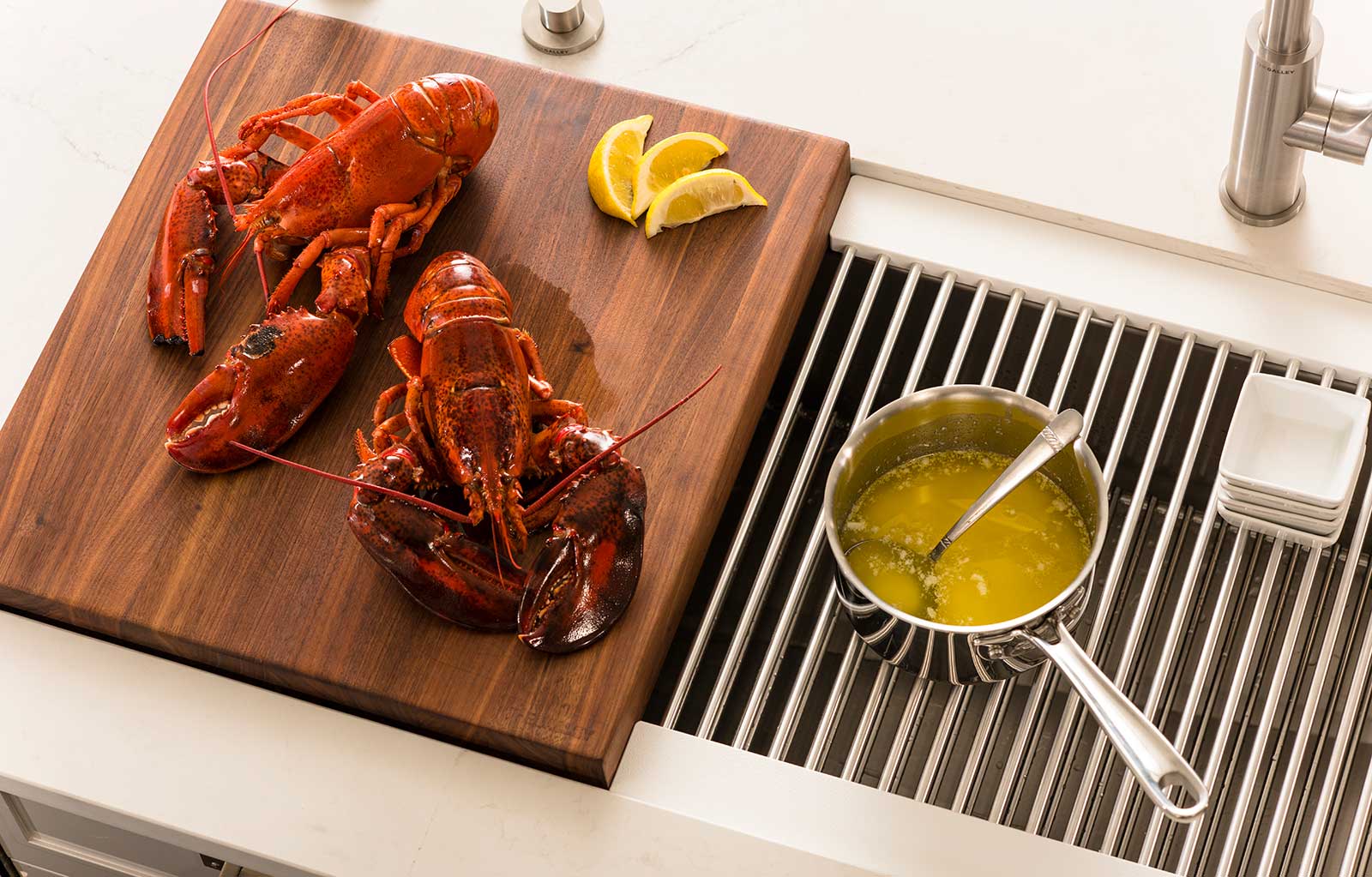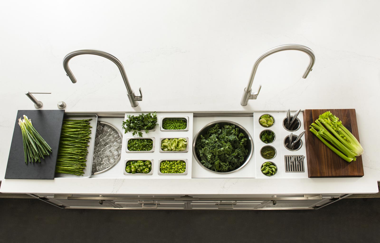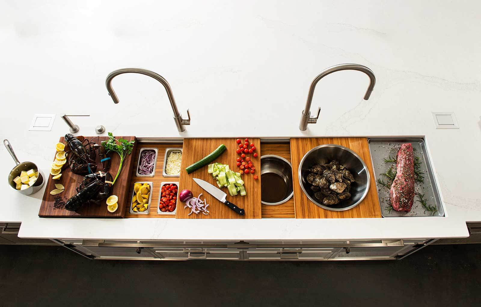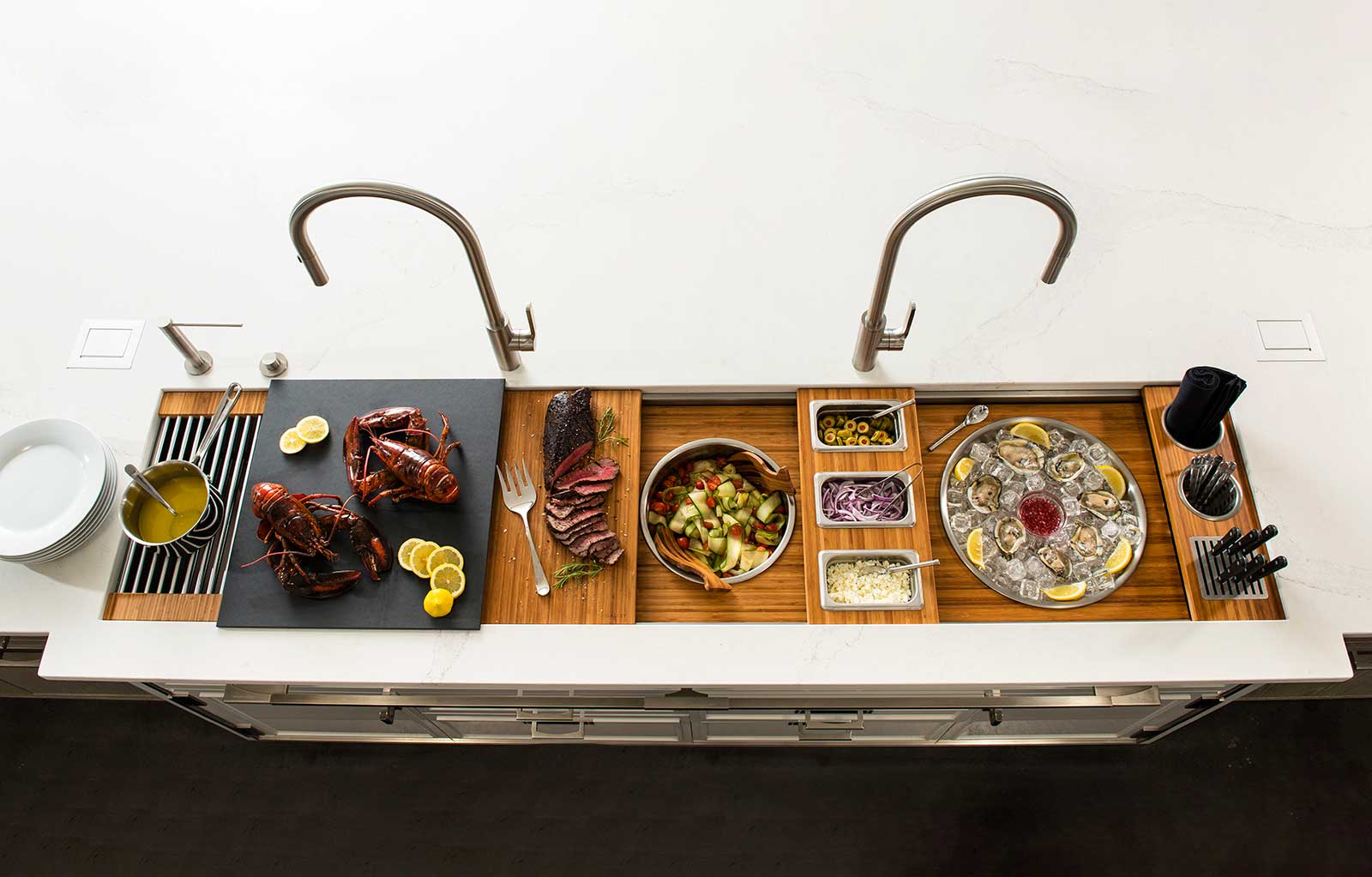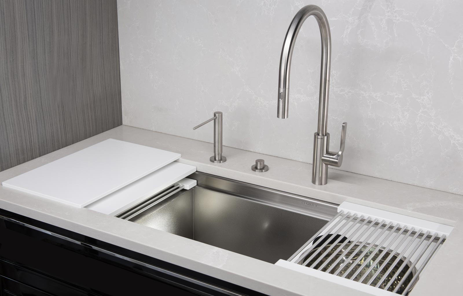 The Galley represents a whole new category of kitchen appliance, a complete culinary system where one can prepare, cook, serve, entertain, and wash all in one central and convenient place. The kitchen is even more functional and ergonomic with a cooktop next to the Workstation. This new kitchen work line concept is much more efficient than the traditional work triangle. Each Galley is thoughtfully designed, engineered, and hand-crafted in the USA.