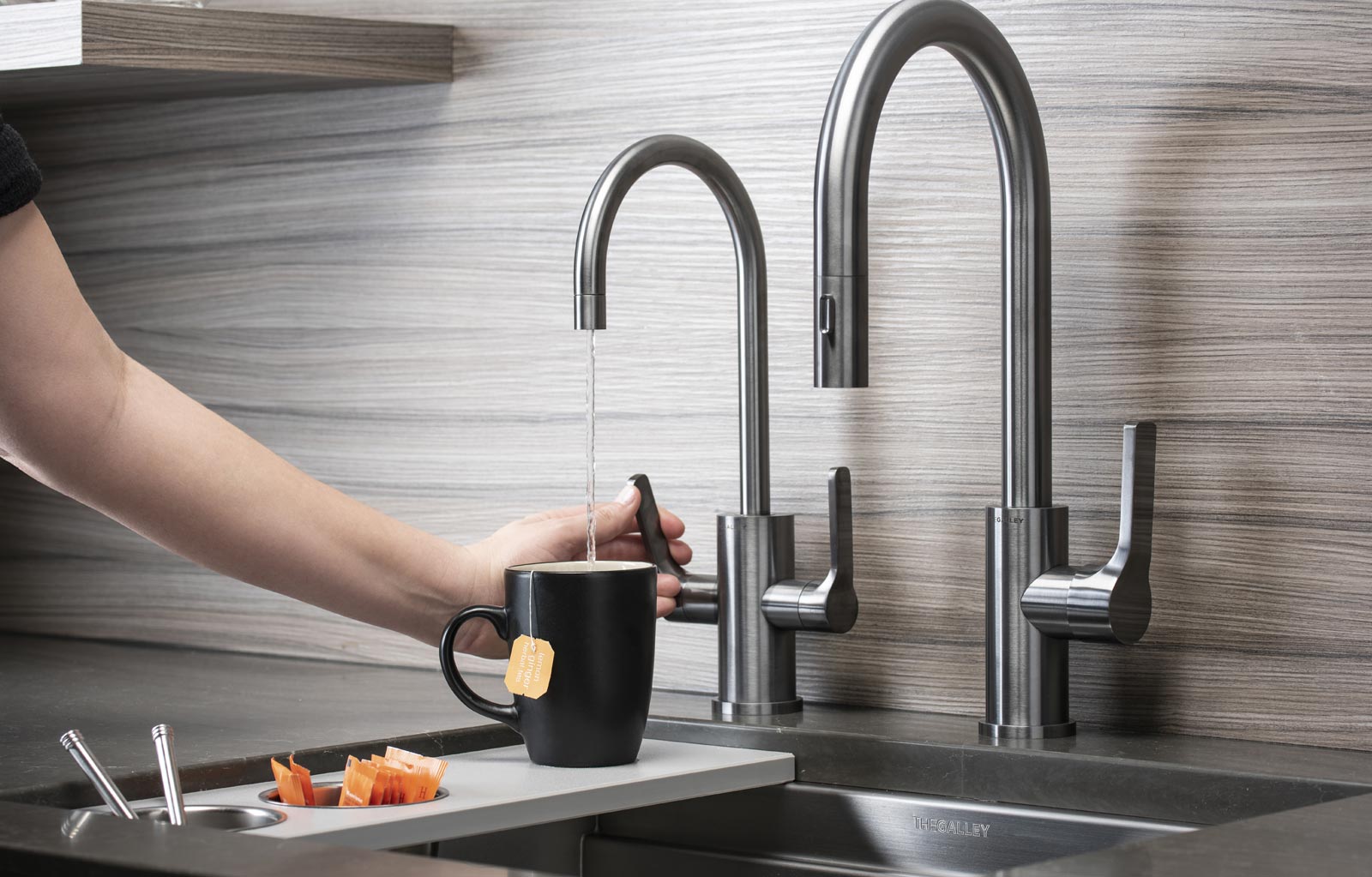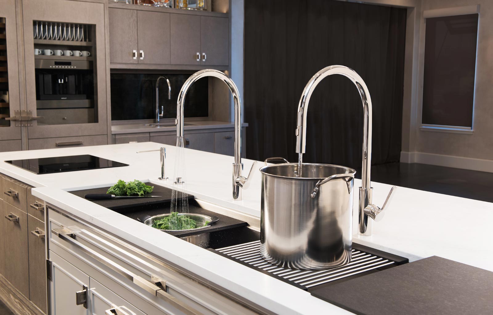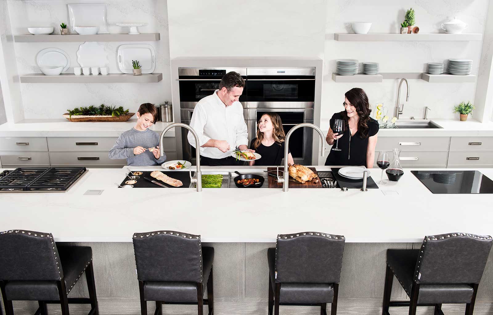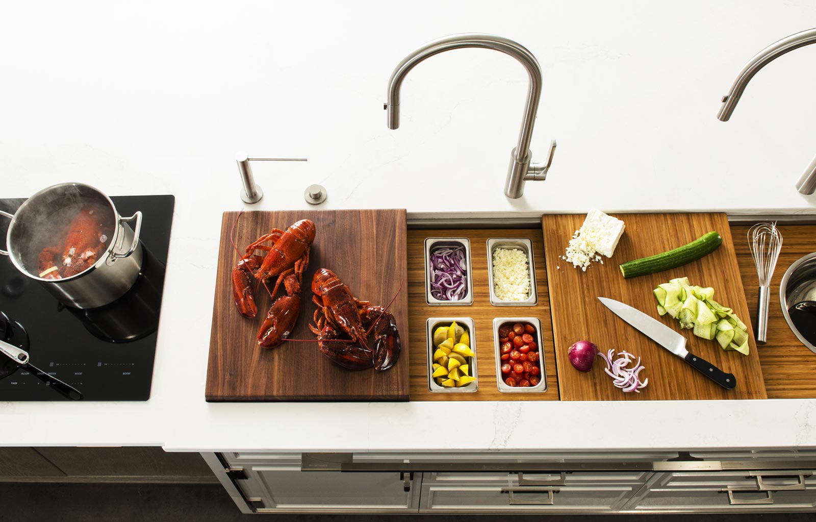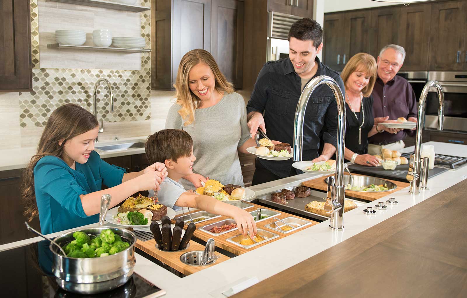 The Galley represents a whole new category of kitchen appliance, a complete culinary system where one can prepare, cook, serve, entertain, and wash all in one central and convenient place. The kitchen is even more functional and ergonomic with a cooktop next to the Workstation. This new kitchen work line concept is much more efficient than the traditional work triangle. Each Galley is thoughtfully designed, engineered, and hand-crafted in the USA.