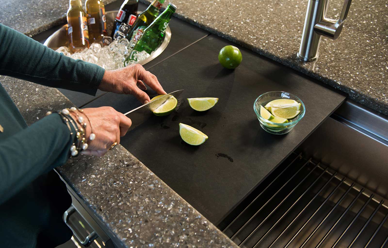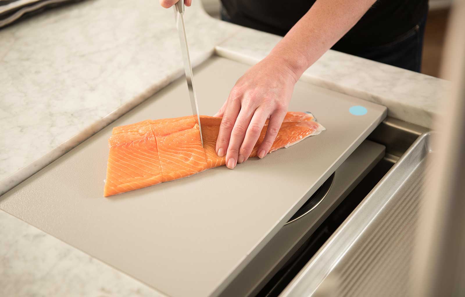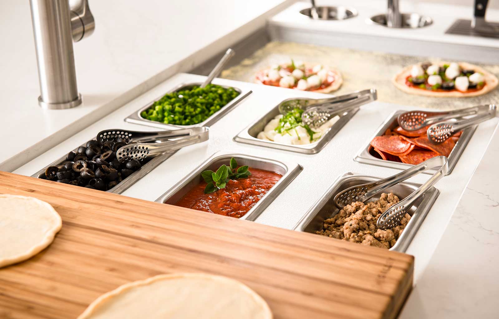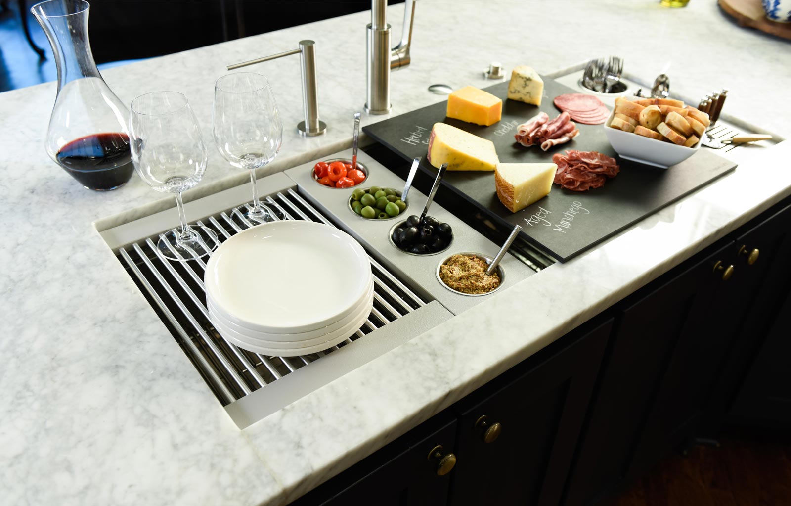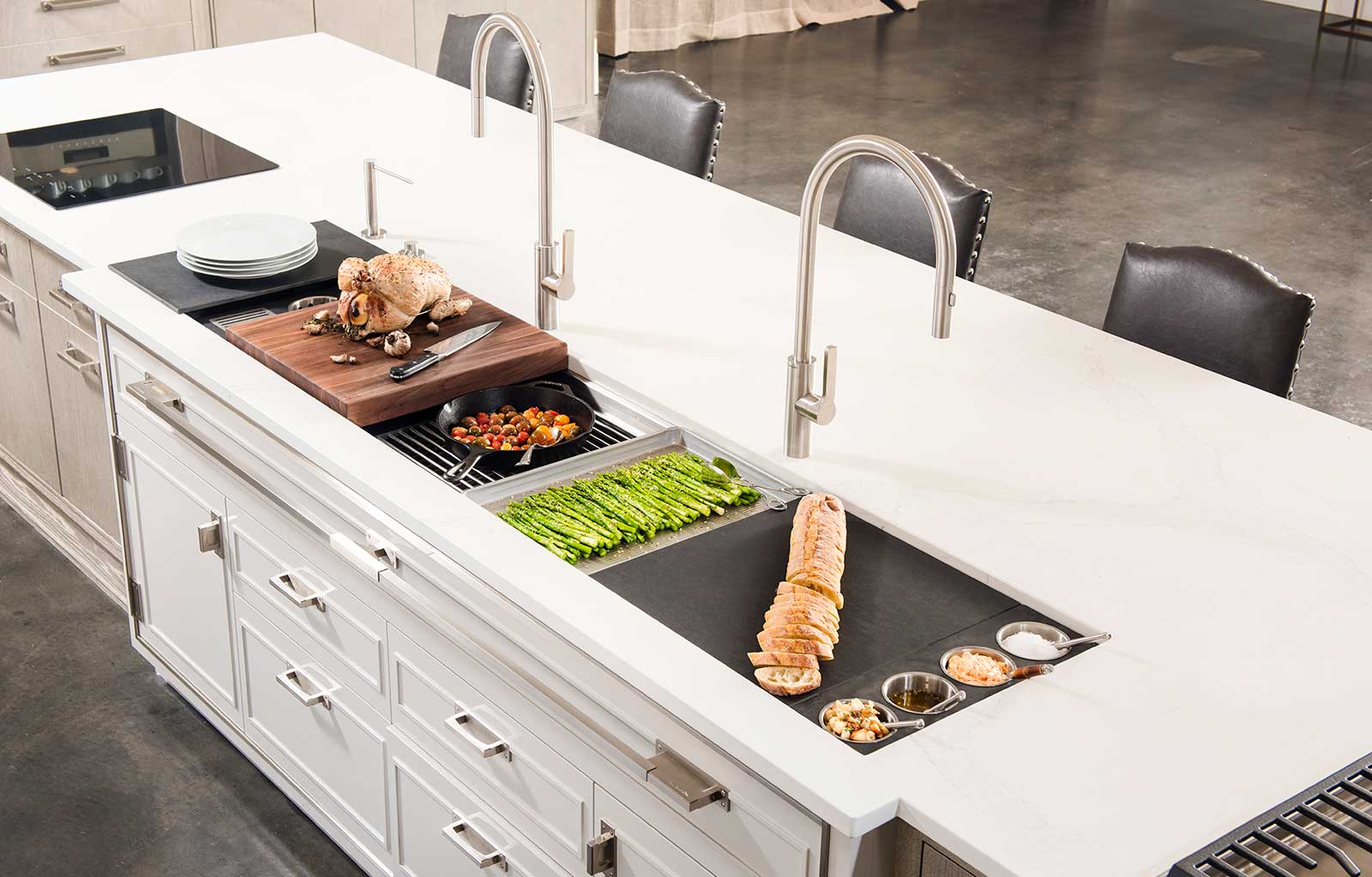 In your Galley, you can chop, strain, and mix easily and ergonomically to prepare a meal and efficiently transition to cooking with a cooktop nearby. Using various Serving Boards, quickly and conveniently transform your prepare and cook station into a serving station or set out drinks and hors d’oeuvres to create an ideal entertain station. Contain the mess within your Galley and clean throughout preparing, cooking, serving, and entertaining!