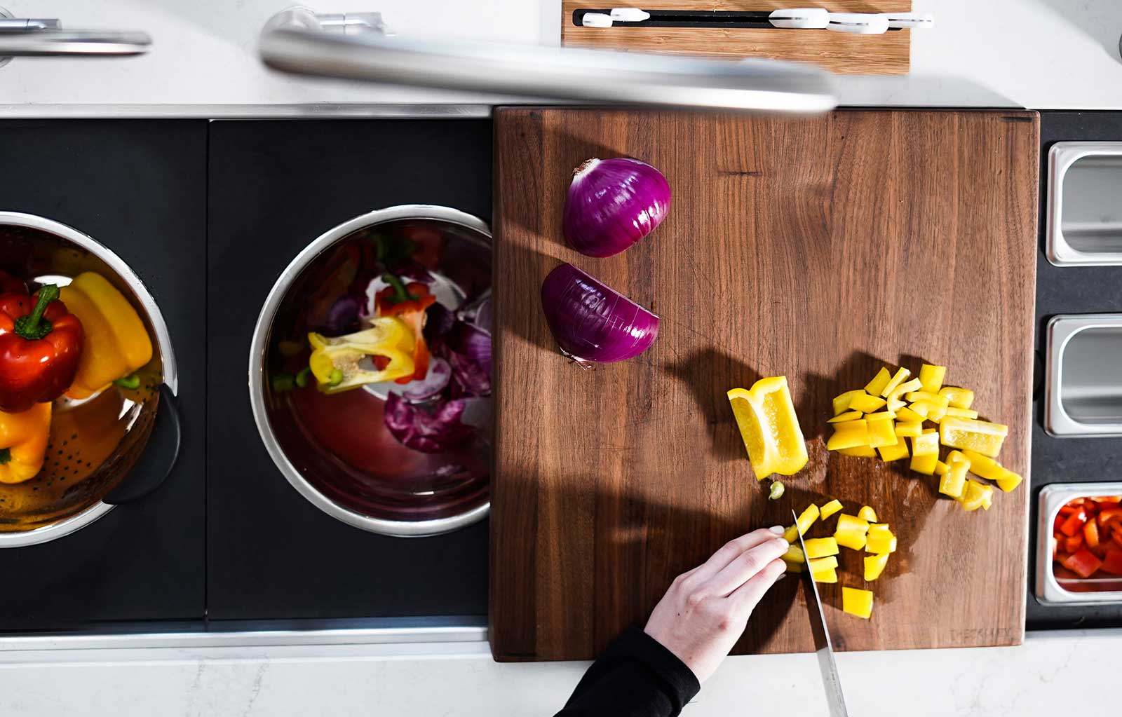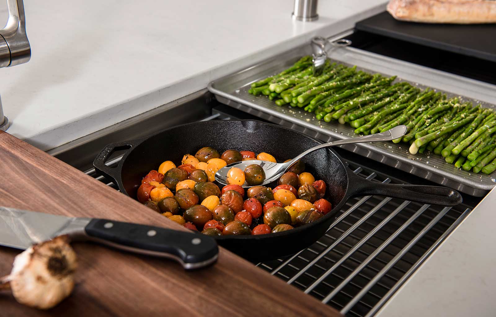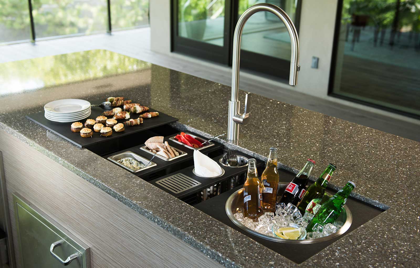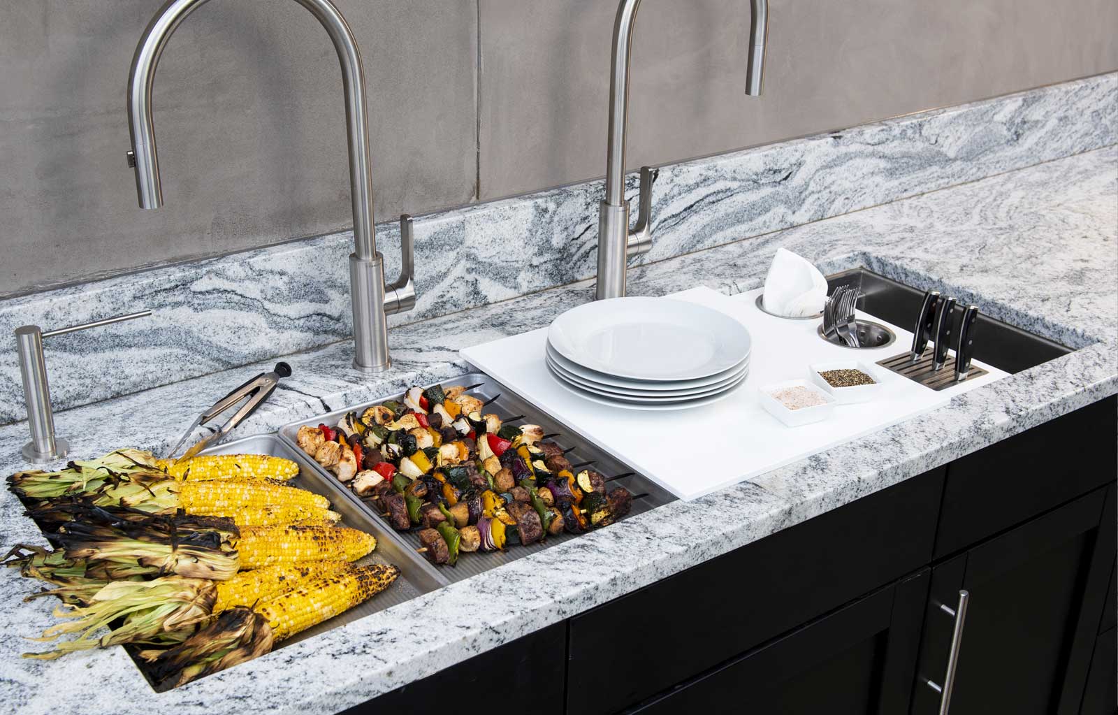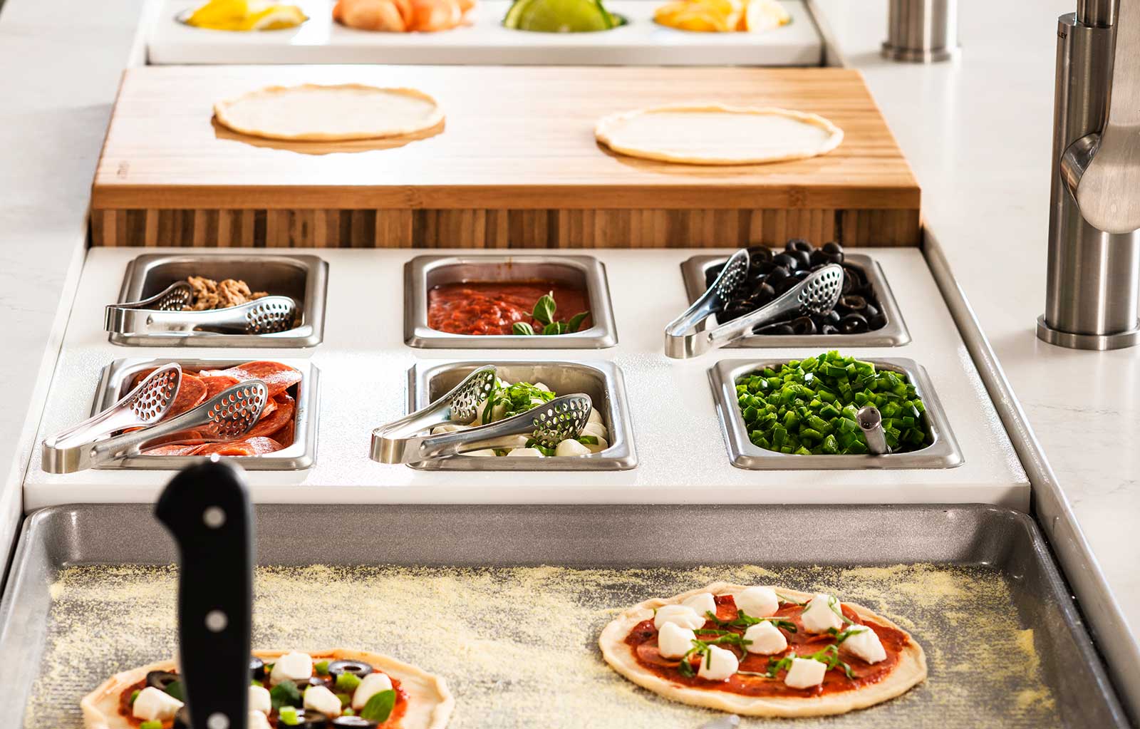 In your Galley, you can chop, strain, and mix easily and ergonomically to prepare a meal and efficiently transition to cooking with a cooktop nearby. Using various Serving Boards, quickly and conveniently transform your prepare and cook station into a serving station or set out drinks and hors d’oeuvres to create an ideal entertain station. Contain the mess within your Galley and clean throughout preparing, cooking, serving, and entertaining!