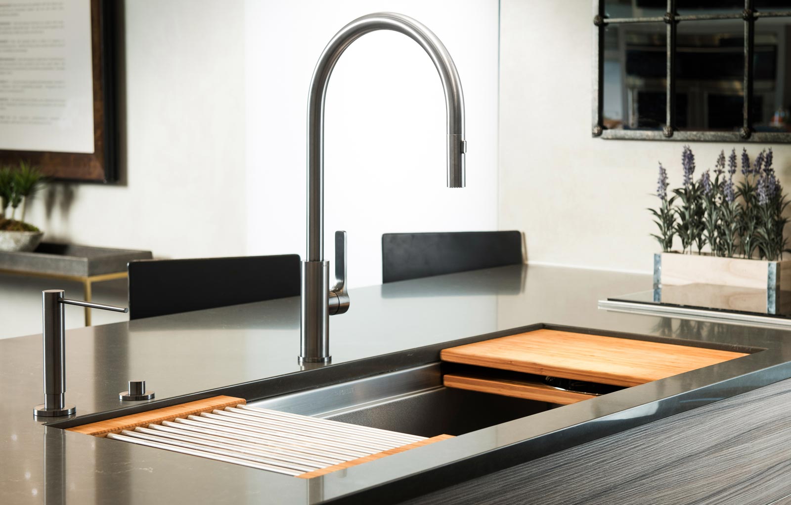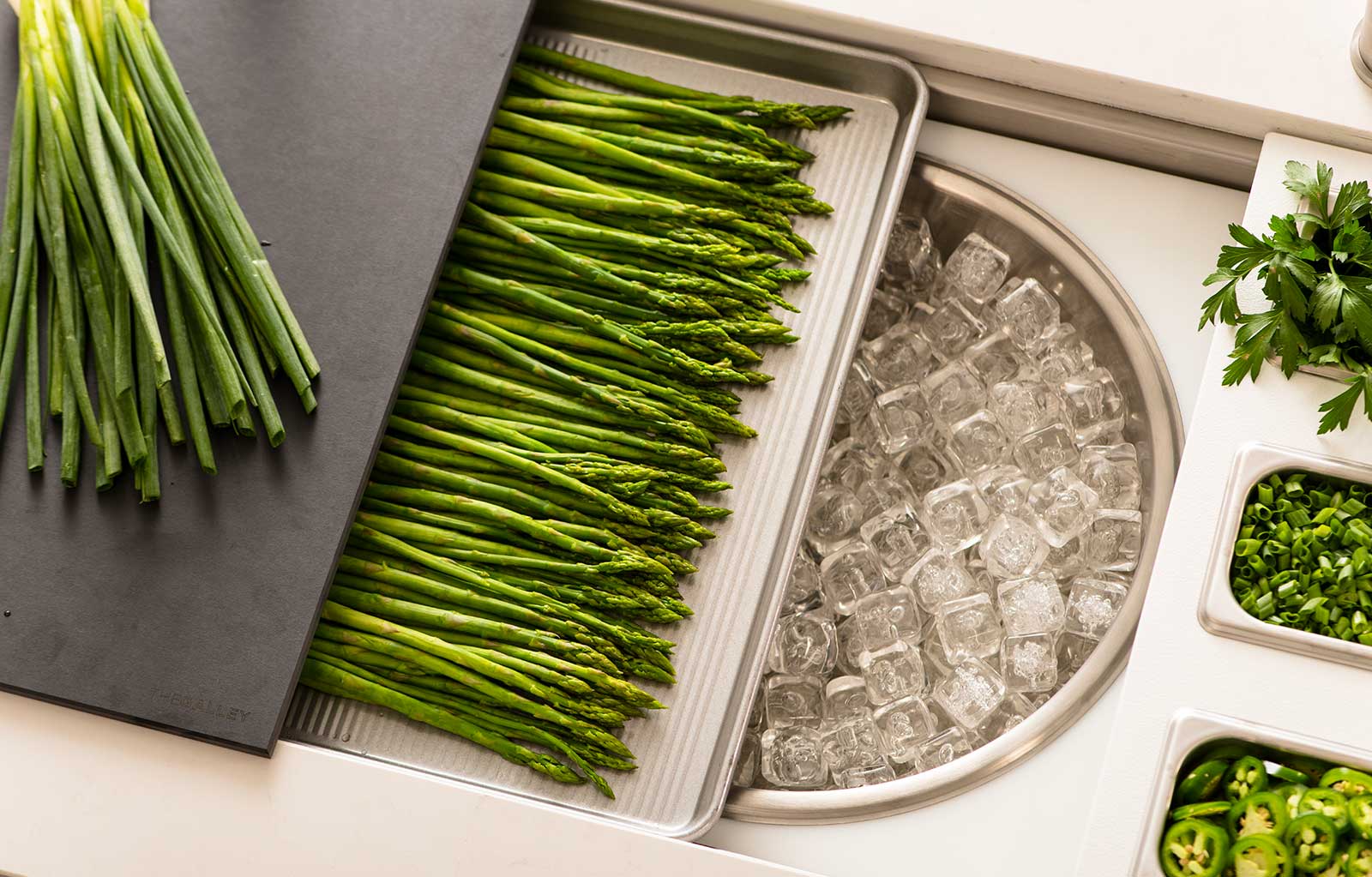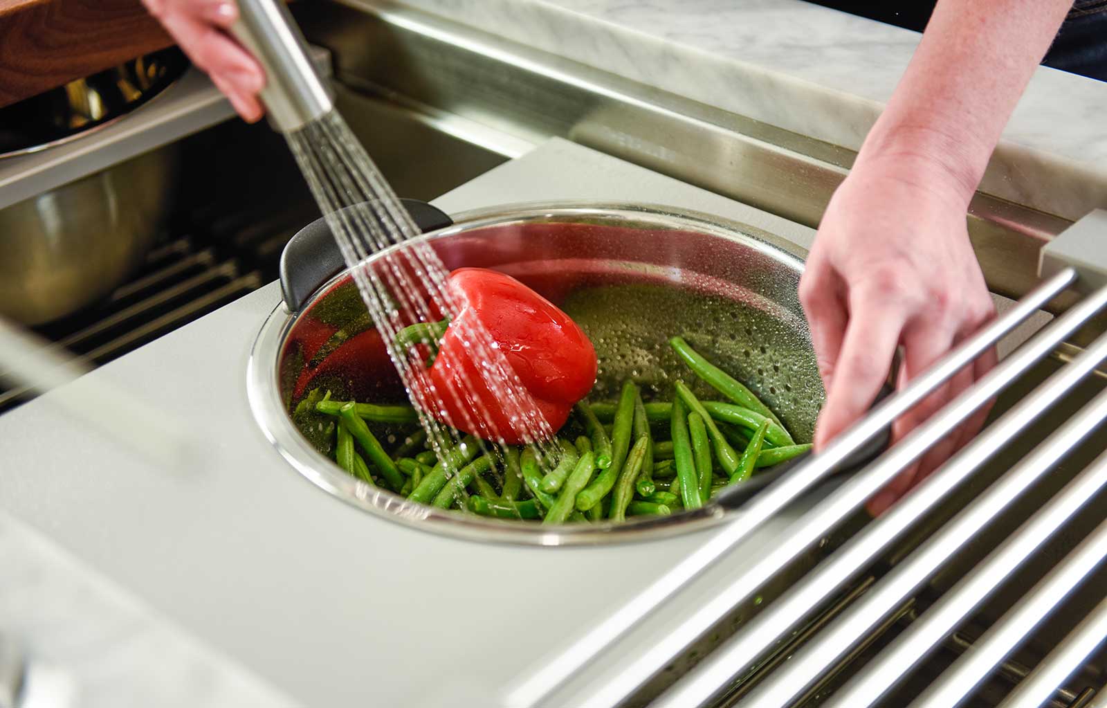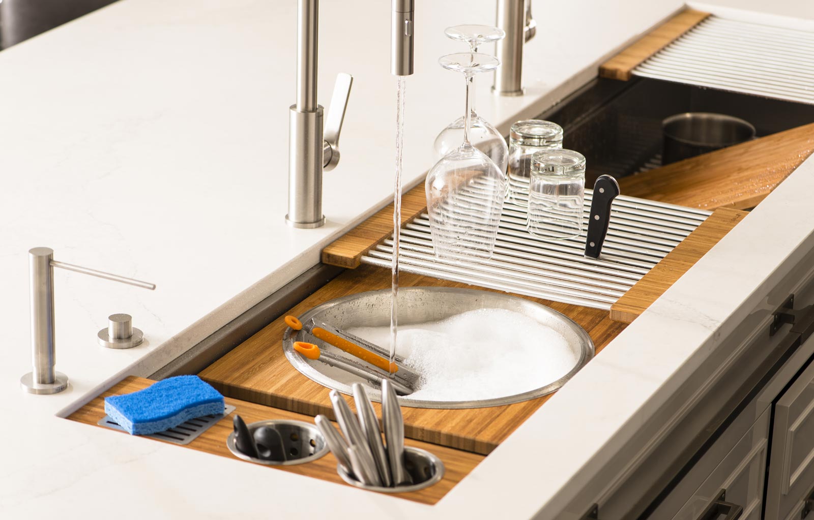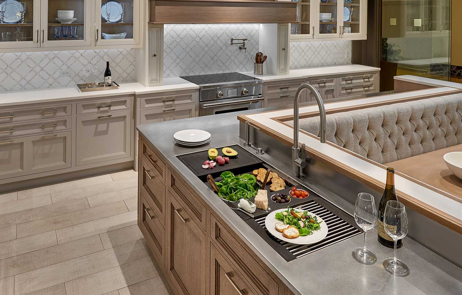 In your Galley, you can chop, strain, and mix easily and ergonomically to prepare a meal and efficiently transition to cooking with a cooktop nearby. Using various Serving Boards, quickly and conveniently transform your prepare and cook station into a serving station or set out drinks and hors d’oeuvres to create an ideal entertain station. Contain the mess within your Galley and clean throughout preparing, cooking, serving, and entertaining!